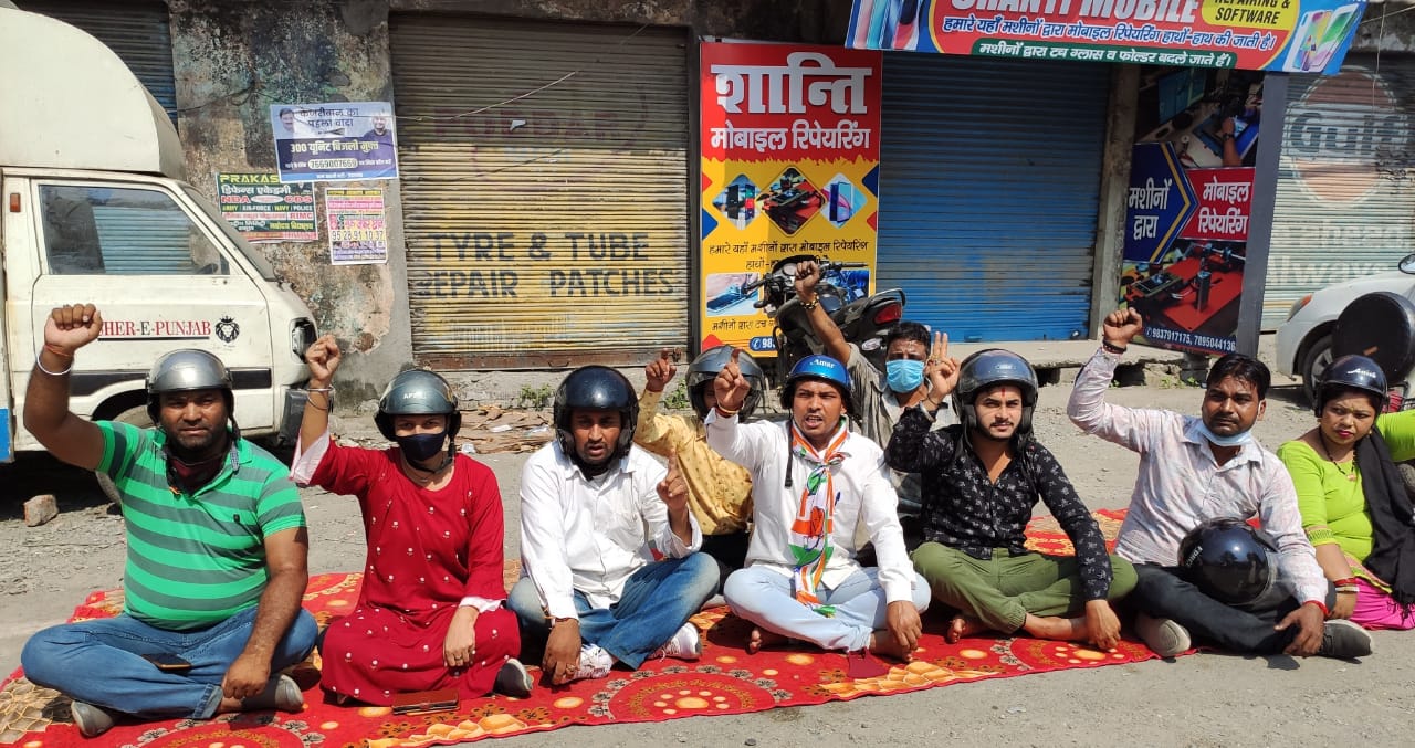 कार्यकर्ताओं ने जिला महामंत्री की अगवाई में तिकोनिया चौराहे पर हैलमेट पहनकर किया ज़ोरदार प्रदर्शन October 9, 2021