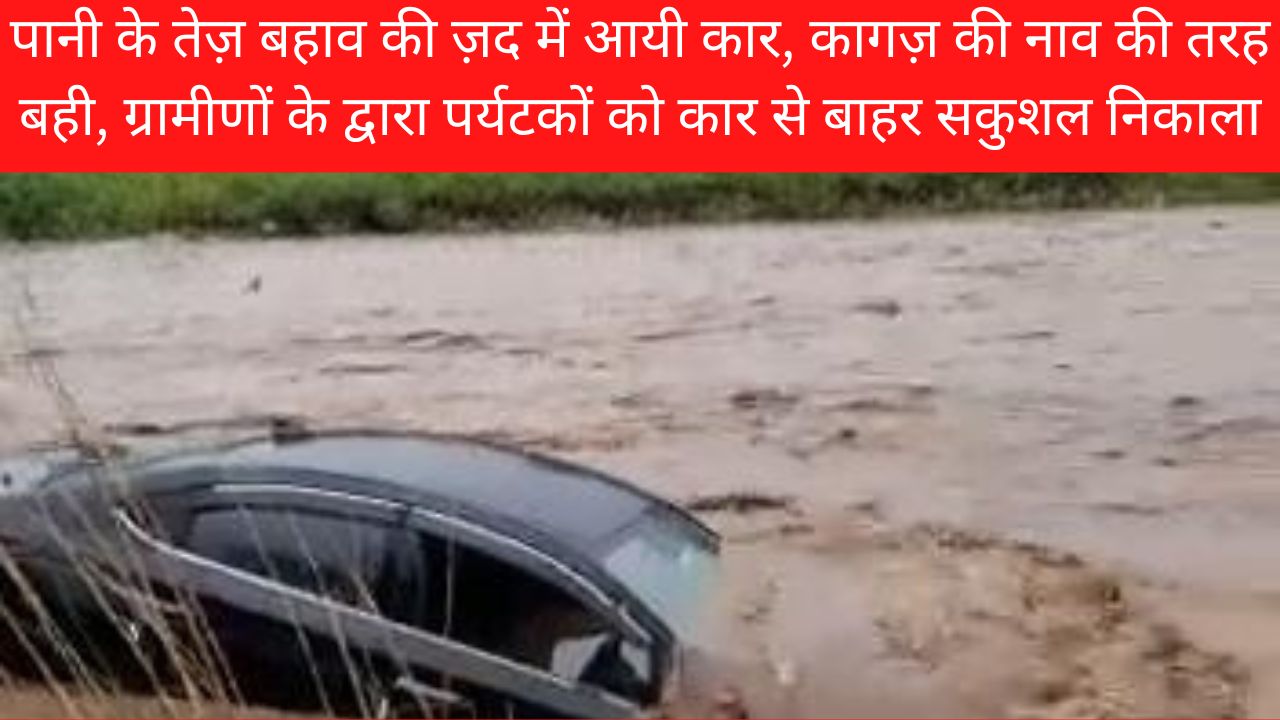 देखें विडियो, पानी के तेज़ बहाव की ज़द में आयी कार, कागज़ की नाव की तरह बही, ग्रामीणों के द्वारा पर्यटकों को कार से बाहर सकुशल निकाला…. September 25, 2022