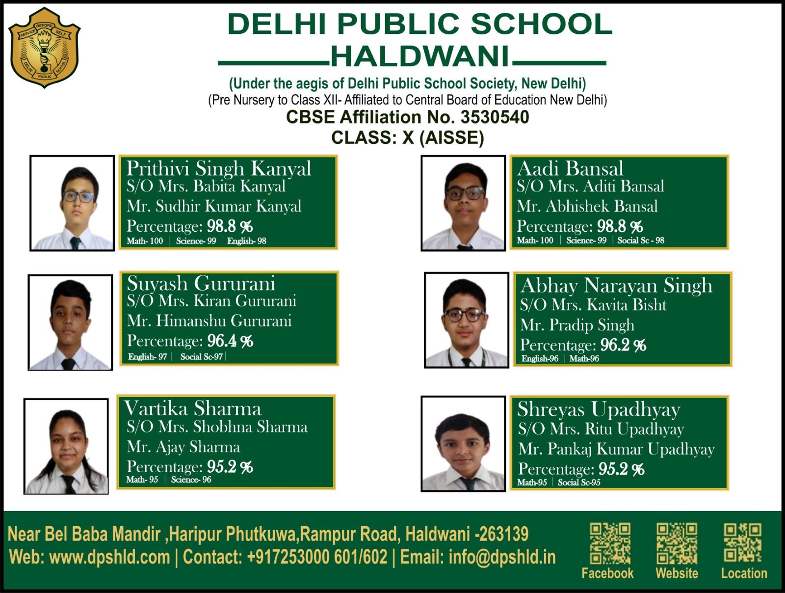 डीपीएस रामपुर रोड, हल्द्वानी कक्षा 12वीं तथा 10वीं की बोर्ड परीक्षा का परिणाम शत- प्रतिशत रहा l….. May 12, 2023