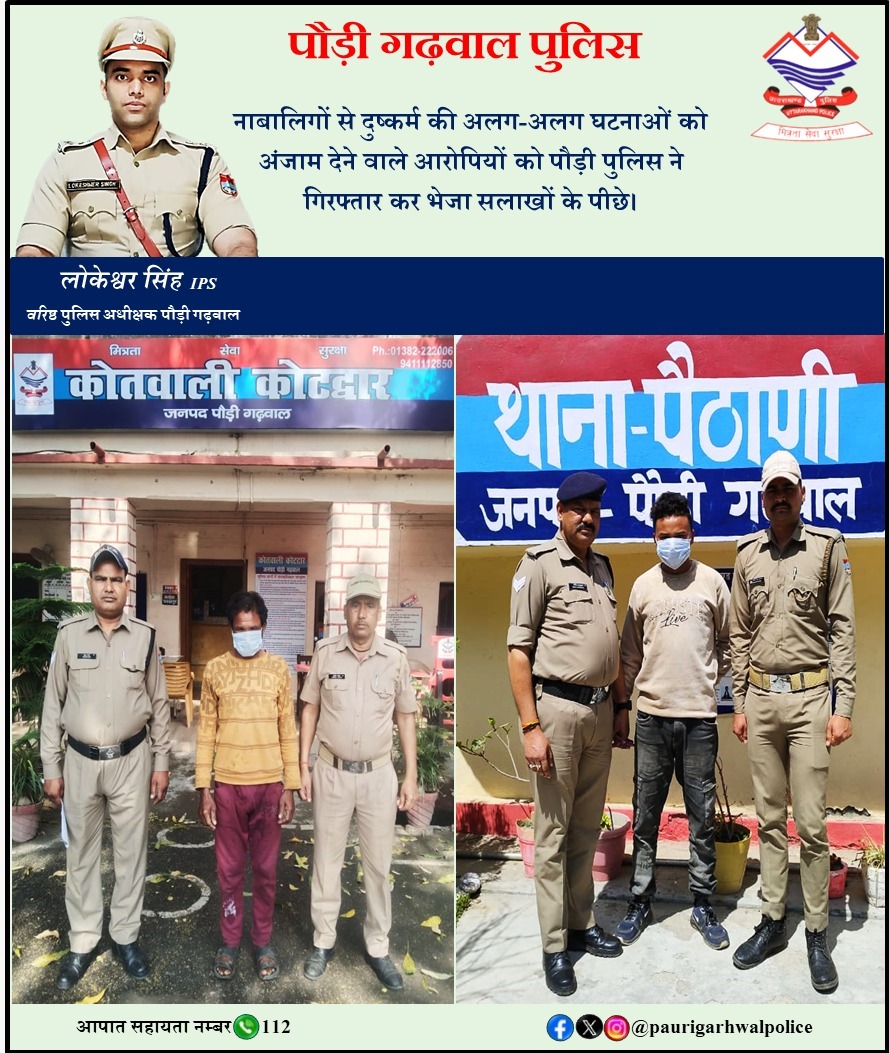 नाबालिगों से दुष्कर्म की अलग-अलग घटनाओं को अंजाम देने वाले आरोपियों को पुलिस ने किया गिरफ्तार…… April 1, 2024