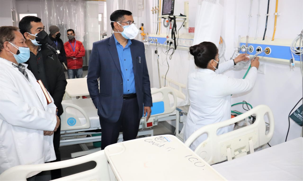 रूद्रपुर-(एम् सलीम खान) जिलाधिकारी युगल किशोर पन्त ने मेडिकल कॉलेज पहुॅचकर कोविड की संभावित तीसरी लहर से निपटने के लिए की गयी तैयारियों का जायज़ा लिया। उन्होंने मेडिकल कॉलेज में बनाये गये काविड वार्ड, आईसीयू सहित आदि का गहनता से निरीक्षण किया। उन्होंने निरीक्षण के दौरान स्टाफ को पीपीई किट के पहने-उतारने हेतु डफिंग एरिया वार्ड के बाहर ही बनाये रखने, पीपीई किट बाहर से पहनकर ही वार्ड और आईसीयू में प्रवेश करने, आईसीयू में स्थापित सभी मशीनों को समय-समय पर चलाने व जॉच करने के निर्देश दिये। उन्होंने बन्द मशीनों को भी चलाकर देखने के निर्देश दिये। उन्होंने निरीक्षण के दौरान ऑक्सीजन आपूर्ति, आईसीयू बेड, एक्सरे मशीन, डायलसिस मशीन सहित सभी तैयारियों के बारे में विस्तार से जानकारी ली तथा महत्वपूर्ण दिशा-निर्देश दिये। उन्होंने सीएमओ कार्यालय में स्थापित कोविड कन्ट्रोल रूम का भी निरीक्षण किया।