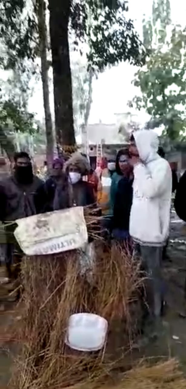 रुद्रपुर-(एम् सलीम खान) सत्ता धारी कुछ नेताओं पर करोड़ों की जमीन हड़पने का मामला सामने आया है। इस मामले में नगर निगम रुद्रपुर के मेयर रामपाल सिंह, भाजपा नेता विकास शर्मा सहित अन्य कई भाजपा नेताओं के नाम सामने आए हैं। वही राधा कुंड बचाओ समिति ने दर्जनों सदस्यों ने इसके विरोध में मेयर रामपाल सिंह और भाजपा नेता विकास तथा जिला भाजपा का पुतला दहन कर अपना विरोध दर्ज कराया। समिति के सदस्यों का कहना था कि नगर निगम द्वारा एक तरफा कार्यवाही करते हुए महंत बाबा राम बालक दास की कुटिया को तेहस नहस कर दिया और जो सामने की दीवार पर नगर निगम ने लाल निशान लगाएं थे,वहां पर किसी भी तरह के अवैध अतिक्रमण को नहीं हटाया। इसके अलावा उन्होंने कहा कि उक्त जमीन से सागौन के पेड़ काटने वालों पर भी नगर निगम द्वारा कोई कार्यवाही नहीं की गई। समिति के सदस्यों ने कहा कि सत्ता पक्ष के नेता महंत के खिलाफ कार्रवाई कर जमीन को हड़पने का षड्यंत्र कर रहे हैं। उन्होंने आरोप लगाया कि इस भाजपा के कई नेता शामिल हैं। वही उन्होंने कहा कि निगम ने जो एक तरफा कार्यवाही हैं, कार्रवाई से पूर्व निगम द्वारा कोई नोटिस नहीं दिया गया।