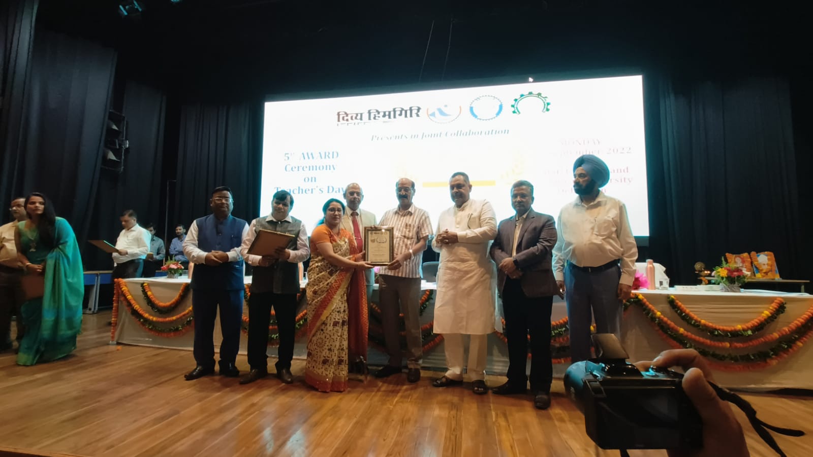 नैनीताल-शिक्षक दिवस पर कुमाऊं यूनिवर्सिटी अर्थशास्त्र विभाग की डॉक्टर ऋचा गिनवाल को टीचर ऑफ द ईयर पुरुस्कार से सम्मानित किया गया ।उन्हे देहरादून में कैबिनेट मंत्री सुबोध उनियाल ,प्रो दुर्गेश पंत कुंवर राज अस्थाना ,प्री ओंकार सिंह कुलपति ने यूकॉस्ट एवम दिव्य हिमगिरि की तरफ से देहरादून में सम्मानित किया ।