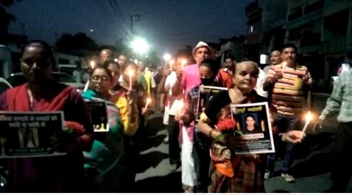 लालकुआ- अंकिता हत्याकांड के विरोध में आज देर शाम कांग्रेस कार्यकर्ताओं ने सड़क पर उतरकर नगर में कैंडल मार्च निकाला और श्रद्धांजलि दी इस दौरान काग्रेंस कार्यकर्ताओं ने राज्य सरकार से तुरंत हत्यारों को फांसी की सजा दिये जाने की मांग की है।बताते चलें कि ऋषिकेश में भाजपा पूर्व दर्जा राज्यमंत्री के पुत्र पुलकित आर्य द्वारा कि गई अंकिता भंडारी की हत्या के विरोध में आज देर शाम वरिष्ठ काग्रेंस नेता हरेंद्र बोरा के नेतृत्व में सैकड़ों कार्यकर्ताओं ने नगर कांग्रेस कार्यालय से लेकर बिन्दूखत्ता कार रोड स्थित शहीद स्मारक तक कैंडल मार्च निकाला। लगातार बेटियों के प्रति अपराध बढ़ रहे हैं।