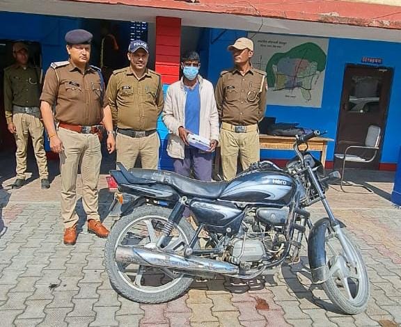 क्षेत्राधिकारी महोदय बाजपुर के निर्देशन में प्रभारी निरीक्षक बाजपुर के नेतृत्व में थाना बाजपुर पुलिस द्वारा शनिवार को समय 15:05 बजे दौराने चेकिंग भैंसिया फार्म तिराहा प्राइमरी स्कूल के पास अभियुक्त बब्बू पुत्र नौसे निवासी ग्राम पोपरी बरहैनी थाना बाजपुर जिला उधमसिंहनगर उम्र 45 वर्ष से 615 ग्राम अवैध चरस बरामद की गई।