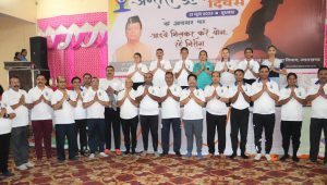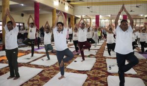 रूद्रपुर- जनपद में 9वां अन्तराष्ट्रीय योग दिवस पूरे हर्षोल्लास के साथ मनाया गया। जनपद स्तरीय योगाभ्यास कार्यक्रम का आयोजन सिटी क्लब रूद्रपुर में किया गया। जिसमें जनप्रतिनिधियों, अधिकारियों एवं कर्मचारियों, विद्यार्थियों सहित आम नागरिकों द्वारा प्रतिभाग किया गया। मेयर रामपाल सिंह, मुख्य विकास अधिकारी एवं प्रभारी जिलाधिकारी विशाल मिश्रा, एसएसपी मन्जूनाथ टीसी ने सिटी क्लब में आयोजित योग कार्यक्रम का दीप जलाकर शुभारंभ किया। सभी ने 9वे अन्तराष्ट्रीय योग दिवस की बधाई दी।
