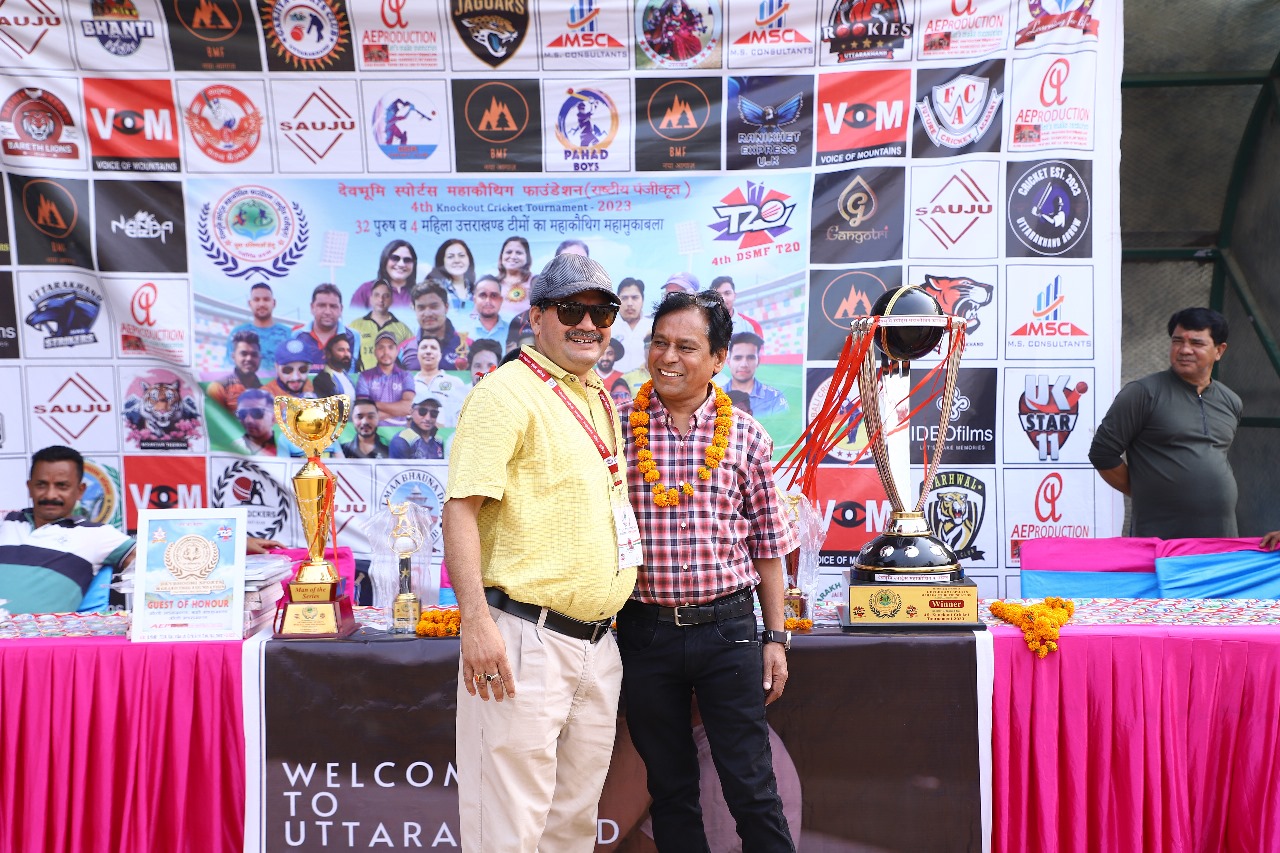 गाजियाबाद- देवभूमि स्पोर्ट्स महाकौथिग फाउंडेशन (राष्ट्रीय पंजीकृत) संगठन 2023 टी 20 क्रिकेट लीग रोमांचक दौर में पहुँच गया है. अभी तक 11 टीम अंतिम 16 में प्रवेश कर चुकी हैं. लीग के चार मैच आज दिनांक 21.10.2023 को विनय मार्ग चाणक्य पुरी दिल्ली क्रिकेट ग्राउंड मैं खेले गये. लीग का आठवाँ मैच पहाड़ बॉयज़ और रानीखेत एक्सप्रेस के बीच खेला गया.