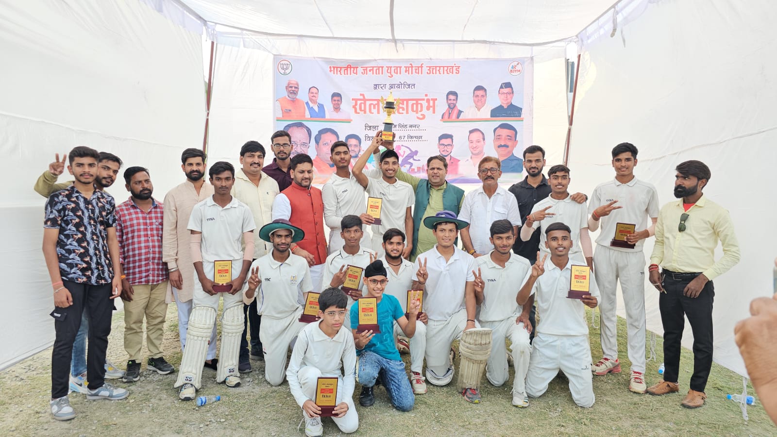 रुद्रपुर- कार्यक्रम के तहत आज DPS इंटरनेशनल विद्यालय के DC ग्राउंड पर डीपीएस क्रिकेट अकैडमी और वॉरियर्स क्रिकेट अकैडमी के बीच मैच खेला गया कार्यक्रम के मुख्य अतिथि भाजपा प्रदेश मंत्री श्री विकास शर्मा जी उपस्थित हुए और खिलाड़ियों का उत्साह वर्धन कर संबोधित किया और विजेता टीम व उपविजेता टीम को ट्रॉफी आदि देकर सम्मानित किया