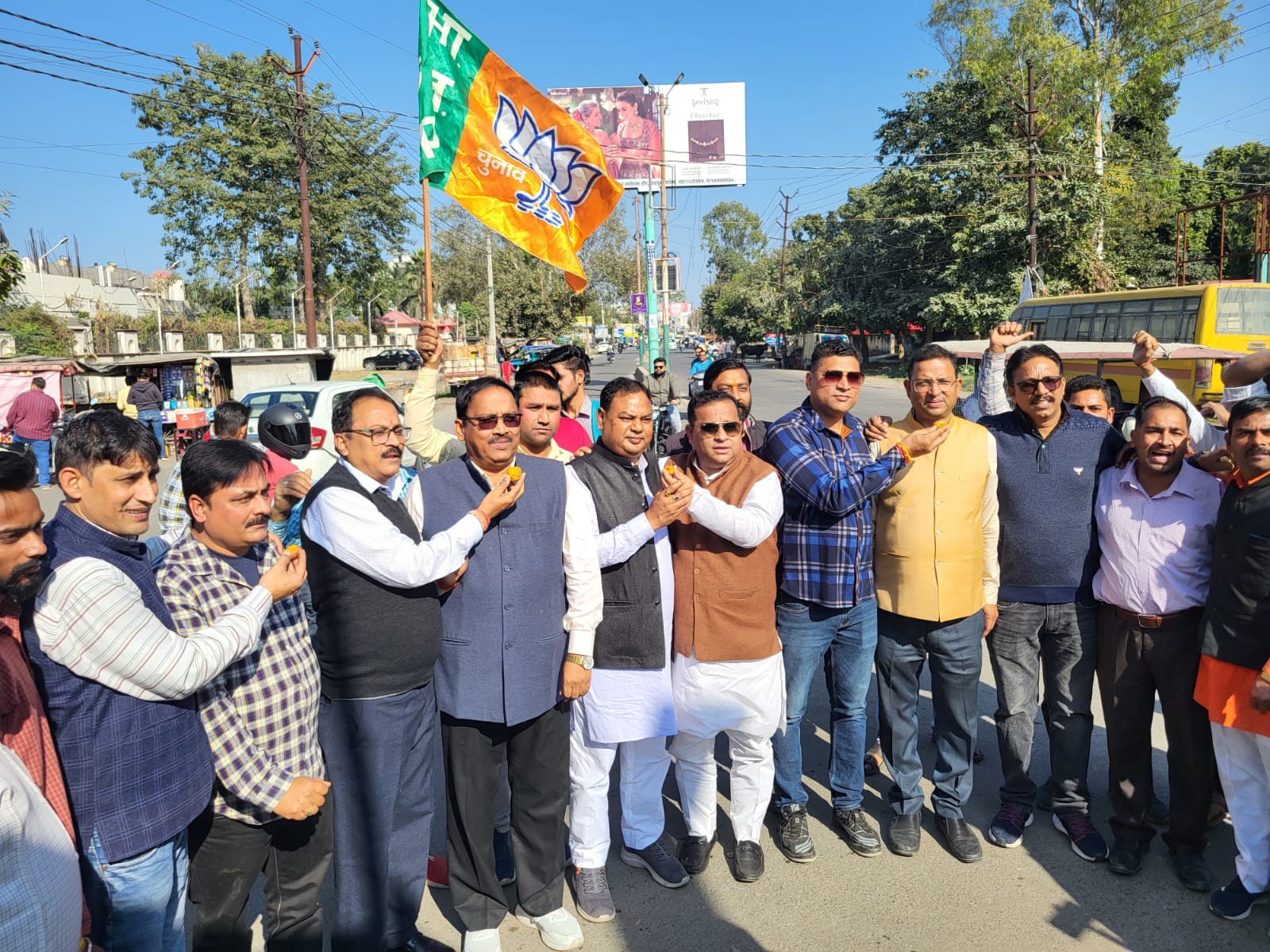 लेकिन प्रधानमंत्री नरेंद्र मोदी की गारंटी को जनता ने महत्व दिया। वहां दो तिहाई बहुमत से भाजपा की सरकार बनने जा रही है। इन चुनावी नतीजों से स्पष्ट है कि जनता भाजपा के साथ है प्रधानमन्त्री नरेंद्र मोदी और मुख्यमंत्री पुष्कर धामी के नेतृत्व में 2024 में उत्तराखंड में पांचों सीटों पर जीत दर्ज कर केंद्र में 400 से अधिक सीट लाकर फिर से भाजपा की सरकार बनेगी। भाजपा आर्थिक प्रकोष्ठ के प्रदेश सहसंयोजक भारत भूषण चुघ ने कहा कि इस समय नरेन्द्र मोदी के नेतृत्व में भारत विश्व गुरु बनने जा रहा है धारा 370, तीन तलाक, राम मन्दिर निर्माण होने से देश में मोदी जी पर विश्वास बढ़ा है और आने वाले लोक सभा चुनाव में तीसरी बार भी केन्द्र में भाजपा की सरकार बनेगी। किसान मोर्चा के पूर्व प्रदेश अध्यक्ष अनिल चौहान ने कहा कि मोदी जी देश के नही बल्कि विश्व के सर्वमान्य नेता हैं मोदी जी ने हमेशा सबका साथ सबका विकास और सबका विश्वास बनाया है