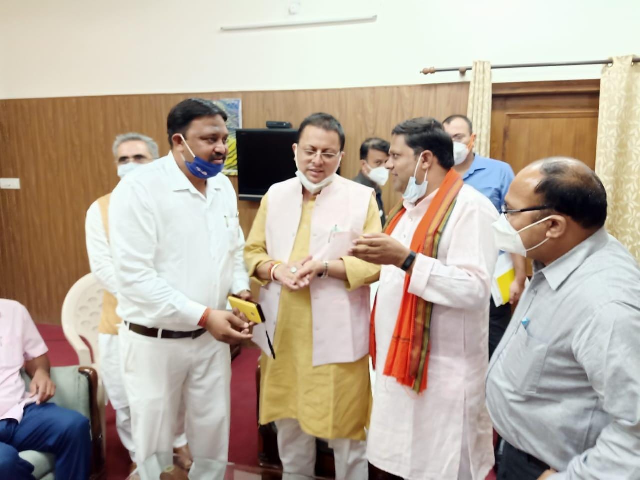 रुद्रपुर – ( शम्मी मैहर) नवनियुक्त मुख्यमंत्री पुष्कर सिंह धामी से शपथ ग्रहण समारोह के बाद हुई वार्तालाप के दौरान वरिष्ठ भाजपा नेता एवं सदस्य पूर्वोत्तर रेलवे इज्जतनगर विकास शर्मा ने मुख्यमंत्री के समक्ष रुद्रपुर के सबसे बड़ी समस्या नजूल भूमि को फ्री होल्ड कराने की नीति का निवेदन किया। साथ ही प्रदेश के बेरोज़गार नौजवानो के लिये रोज़गार नीति बनाकर रोज़गार देने की मांग की, व्यापारियों को बैंक ब्याज के छूट देने समेत आदि मांगो को रखा। वरिष्ठ भाजपा नेता विकास शर्मा ने कहा कि रुद्रपुर क्षेत्र की नजूल भूमि का मुद्दा बेहद ही गम्भीर मुद्दा है उन्होंने रुद्रपुर की नजूल भूमि को नीति बनाकर फ्री होल्ड करवाने की मांग की।