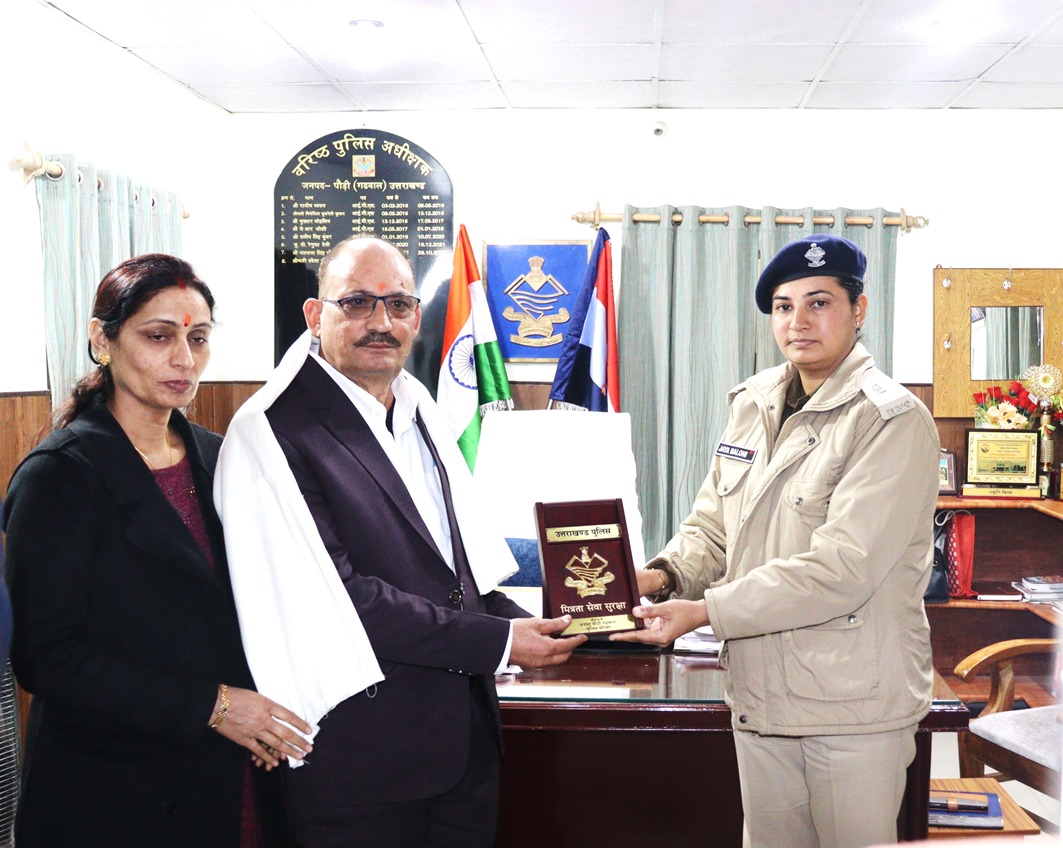 पौड़ी- जनपद पुलिस से उपनिरीक्षक श्री दर्शन सिंह बिष्ट के ऐच्छिक सेवानिवृत्ति के अवसर पर पुलिस कार्यालय पौड़ी में विदाई समारोह का आयोजन किया गया। विदाई समारोह के अवसर पर अपर पुलिस अधीक्षक कोटद्वार श्रीमती जया बलोनी, अपर पुलिस अधीक्षक संचार श्री अनूप काला एवं क्षेत्राधिकारी सदर पौड़ी श्री अनुज कुमार, प्रतिसार निरीक्षक श्री अनुराग कुमार आदि पुलिस कार्मिकों द्वारा सेवानिवृत्त हो रहे उपनिरीक्षक श्री दर्शन सिंह बिष्ट व उनके परिजनों का स्वागत किया गया तत्पश्चात सेवानिवृत्त कार्मिक को स्मृति चिन्ह,