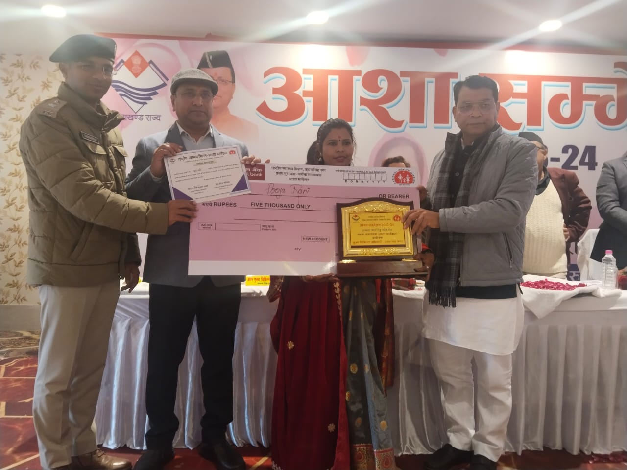 रुद्रपुर- विधायक शिव अरोरा ने आशा सम्मेलन 23-24 के निमित उत्कृष्ट कार्य करने वालो आशा कार्यकर्ता को उनके क्षेत्र में बेहतर कार्य करने पर राष्ट्रीय स्वास्थ्य मिशन आशा कार्यक्रम के निमित जिला उधम सिंह नगर के अलग अलग क्षेत्रो से आयी आशा कार्यकर्ता को समान्नित किया गया जिसमें आशा कार्यकर्ता,आशा फेसिलेट्टर व ब्लाक समन्वयक को एक हजार से लेकर पांच हजार रुपये तक की धनराशि के चैक सोपे गये, इस दौरान कार्यक्रम में पहुँचे विधायक शिव अरोरा को का सीएमओ मनोज शर्मा ने बुके भेट कर स्वागत किया,