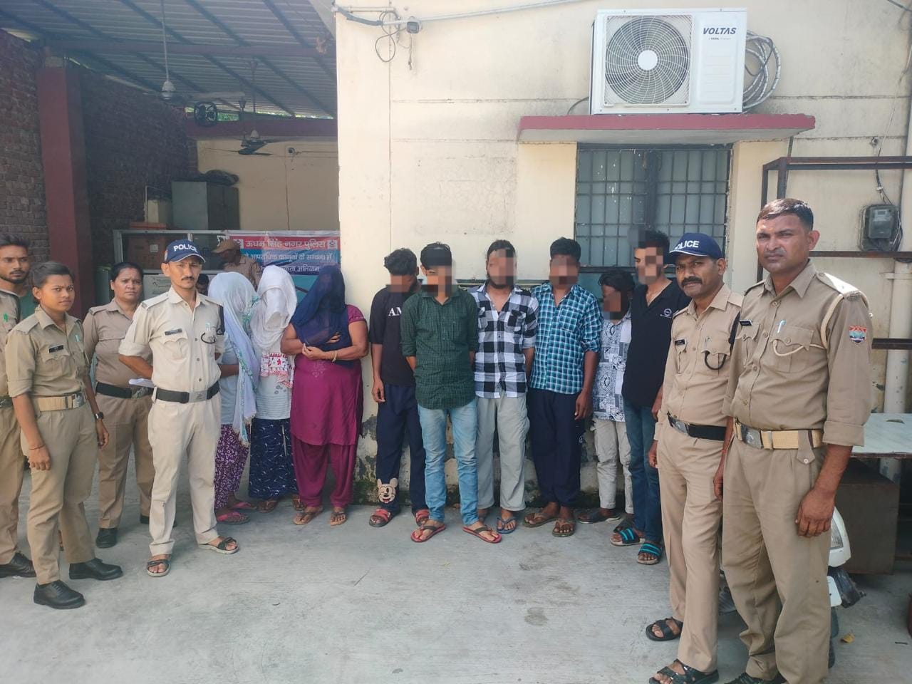 जिस पर 06 नफ़र पुरूष अभियुक्त तथा 03 नफ़र महिला अभियुक्ता व 6500 रुपये की नगद धनराशि व आपत्ति जनक सामग्री के साथ बरामद कर गिरफ़्तार कर थाना ट्रांजिट कैम्प में मुक़दमा FIR N0 194/2024 धारा 143 BNS व धारा 3/4/5/6 अनैतिक व्यापार निवारण अधिनियम 1956 में अभियोग पंजीकृत किया गया साथ ही 05 पीड़ित महिलाओं का रेस्क्यू कर परिजनो के सुपुर्द किया गया।