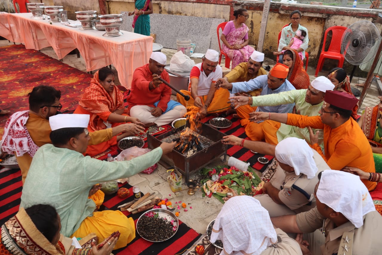 रुद्रपुर- एसएसपी ऊधम सिंह नगर डॉ0 मंजुनाथ टीसी महोदय द्वारा पवित्र सावन मास के प्रथम सोमवार के शुभ अवसर पर थाना दिनेशपुर में बने नवनिर्मित मंदिर में विधि विधान से हवन पूजन किया गया। इस अवसर पर समस्त थाना दिनेशपुर स्टाफ द्वारा भी सावन माह के अवसर पर विधिवत पूजा अर्चना की गई।