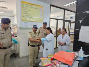 हल्द्वानी_रक्षाबंधन के पर्व को मनाने STH पहुंची पुलिस, बंधवाई डॉक्टर बहनों से राखियां, उपहार भेंट कर बहनों दिया सुरक्षा का भरोसा पूरे देश में बहन-भाई के अटूट प्रेम, स्नेह व विश्वास का प्रतीक पावन पर्व रक्षाबंधन मनाया जा रहा है। जिसके सकुशल आयोजन के लिए प्रह्लाद नारायण मीणा, एसएसपी नैनीताल द्वारा जिलेभर में भारी मात्रा में पुलिस कर्मियो को तैनात कर