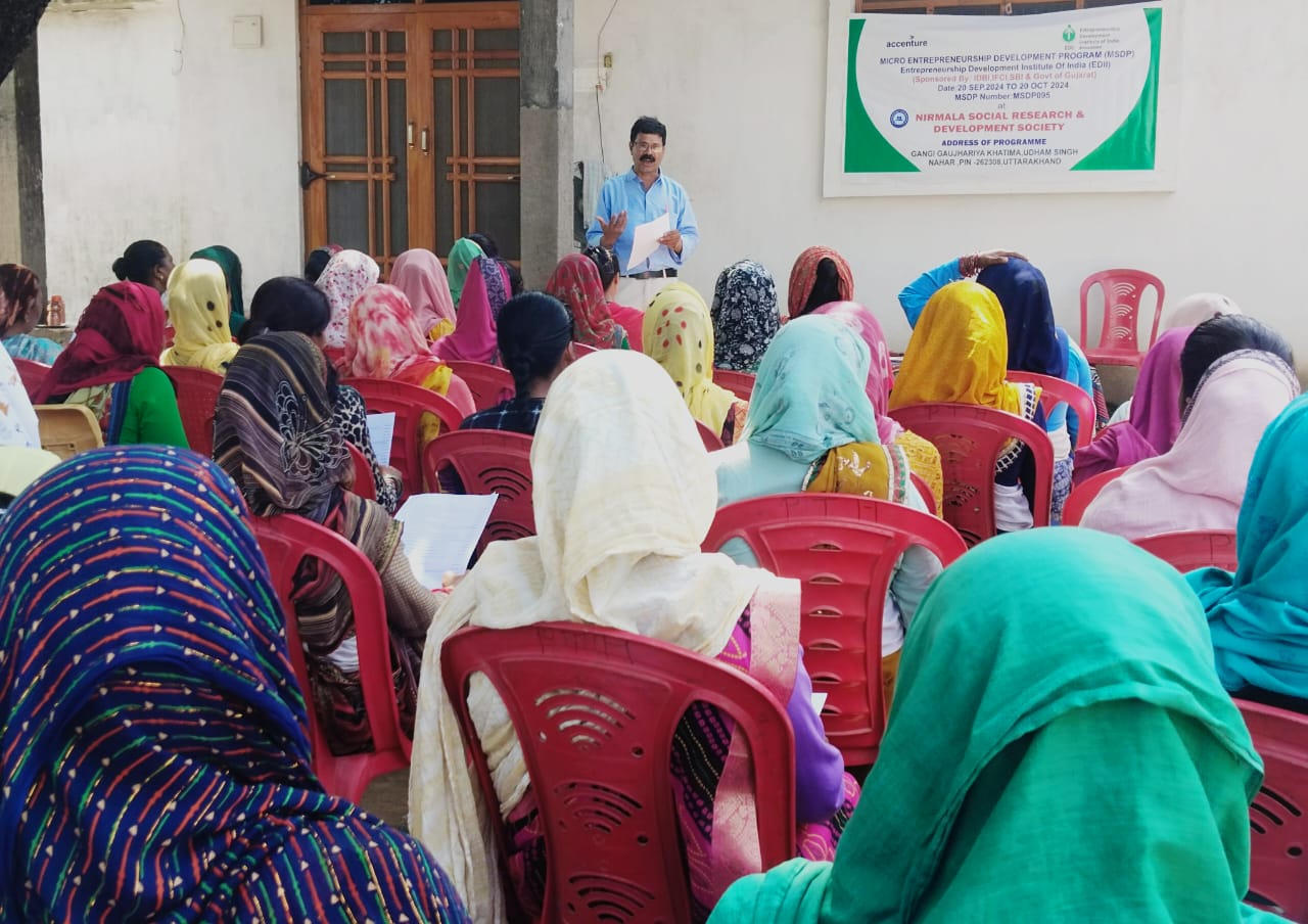 और कैसे अपना स्वयं का स्वरोजगार स्थापित कर सकें और महिलाओं को आत्मा सामान बढ़ाया की ई डी आई आई और निर्मला संस्था उनके हर कदम पर उनके साथ हैं कार्यक्रम में संस्था से हेमा बिष्ट, दुष्यंत सिंह , सक्रिय महिला श्रीमती मान वती देवी मास्टर ट्रेनर सुनील देवी तथा 98 महिलाएं उपस्थित रहे।