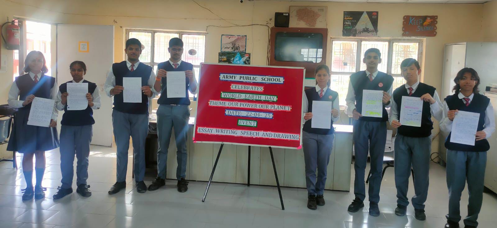 पौड़ी – आर्मी पब्लिक स्कूल लैंसडौन में वर्ल्ड अर्थ डे के उपलक्ष में अंतर सदनीय प्रतियोगिताओं का आयोजन किया गया। सर्वप्रथम विद्यालय सभागार में कक्षा छठी से आठवीं तक के प्रतिभागियों के लिए भाषण प्रतियोगिता का आयोजन किया गया। जिसका विषय हमारा ग्रह हमारी ताकत था। जिसमें शिवाजी सदन ने प्रथम, टैगोर सदन ने द्वितीय व सुभाष व नेहरू सदन ने सम्मिलित तृतीय स्थान प्राप्त किया। कक्षा तीसरी से पांचवीं तक के विद्यार्थियों के लिए वर्ल्ड अर्थ डे विषय पर चित्रकला प्रतियोगिता का आयोजन किया गया।