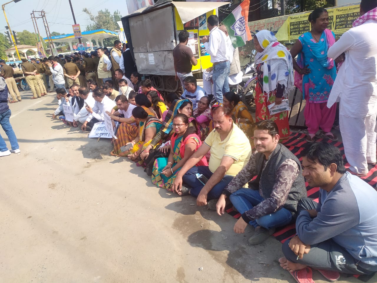 रुद्रपुर (एम सलीम खान) रुद्रपुर के डीडी चौक पर 6 सूत्रीय मांगों को लेकर दिया धरना (जेपी नड्डा और सीएम धामी के खिलाफ जमकर नारेबाजी काफिले को रोकने की कोशिश)-(बाढ़ प्रभावित परिवारों को गुमराह करने का आरोप लगाया)-(नड्डा और सीएम के खिलाफ नारेबाजी नड्डा धामी वापस जाओ) रुद्रपुर भारतीय जनता पार्टी के राष्ट्रीय अध्यक्ष जेपी नड्डा और मुख्यमंत्री पुष्कर सिंह धामी के दौरे को लेकर कांग्रेस नेताओं ने जमकर नारेबाजी करते हुए विरोध दर्ज कराया। महानगर कांग्रेस कमेटी के नेतृत्व में कांग्रेसियों ने नगर के डीडी चौक पर भाजपा के राष्ट्रीय अध्यक्ष जेपी नड्डा और मुख्यमंत्री पुष्कर सिंह धामी के दौरे को लेकर जमकर हंगामा किया। महानगर कांग्रेस कमेटी के अध्यक्ष जगदीश तनेजा के नेतृत्व में कांग्रेसियों ने बाढ़ प्रभावित परिवारों व किसानों की फसल के नुकसान की भरपाई मांग करते हुए नड्डा और धामी के इस दौरे के खिलाफ मोर्चा खोल दिया। कांग्रेसियों का कहना था कि विगत दिनों रुद्रपुर में आई बाढ़ प्रभावित परिवारों को राहत के नाम जो चैक वितरित किए गए थे, वह बोन्स हो रहें हैं। आपदा प्रभावित लोग संबंधित अधिकारियों के कार्यालयों के चक्कर लगा रहे हैं, और अधिकारी कोई बात सुनकर राज़ी नहीं है। वही उन्होंने कहा कि बाढ आने की वजह से तराई के किसानों की फसल बर्बाद हो गई। लेकिन सरकार की ओर से बाढ़ प्रभावित किसानों को कोई सहायता उपलब्ध नहीं कराई गई है। वही उन्होंने बाढ़ प्रभावित व्यापारियों को भी सहायता उपलब्ध कराने की मांग उठाई। इसके अलावा उन्होंने कहा कि रुद्रपुर रोडवेज बस स्टैंड के आसपास पिछले लंबे समय से स्थापित दुकानदारों को सरकार उजड़ने का प्रयास कर रही है। जिसे किसी भी तरह बर्दाश्त नहीं किया जाएगा। कांग्रेसियों ने छह सूत्रीय मांगों को लेकर कहा कि बाढ़ प्रभावित परिवारों को सरकार ने पक्के मकान व कच्चे निर्माण पूरी तरह ध्वस्त क्र दिए हैं। उनके मकानों के पुनः निर्माण का कार्य कराया जाए। वही उन्होंने कहा कि आपदा प्रभावित लोगों को जो चैक 3800 रुपए के वितरित किए गए थे, वो नुकसान के विपरीत नाम मात्र सहायता हैं। वही बहुत से परिवारों को यह सहायता उपलब्ध भी नहीं हो पाईं है। उन्होंने आपदा प्रभावित लोगों के पुनः सर्वेक्षण की मांग करते हुए अधिक मुआवजा देने की मांग की। इसके अलावा उन्होंने कहा इस आपदा में अनेकों व्यापारियों का भी नुक्सान हुआ है। उनकी दुकानों में बाढ का पानी भर गया। उन व्यापारियों का निरीक्षण कर आर्थिक सहायता उपलब्ध कराई जाए। वही उन्होंने बाढ़ प्रभावित किसानों को भी आर्थिक सहायता उपलब्ध कराने की मांग उठाई। कांग्रेसियों ने कहा कि किसानों की रबी फसल की बुवाई की तैयारी चल रही थी। परंतु किसानों को एनपीके खाद 